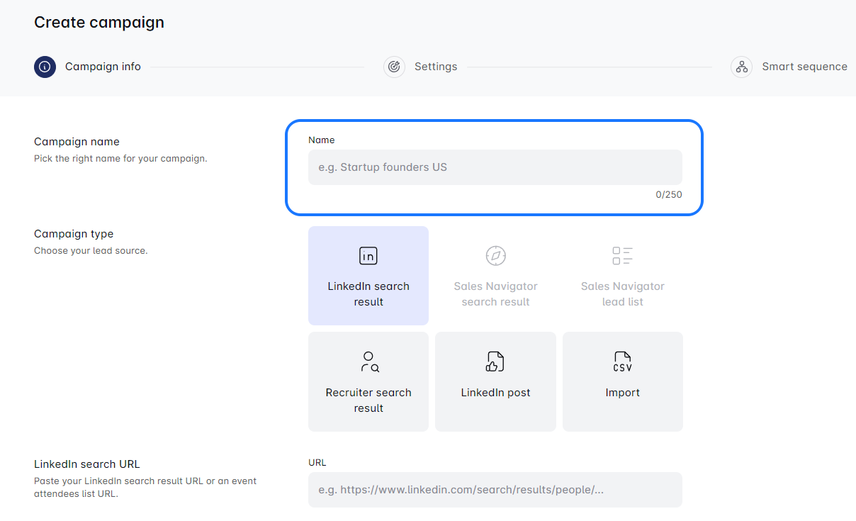 - Next, just copy-paste the URL with your new LinkedIn Search Results. Alternatively, you can import a CSV file.