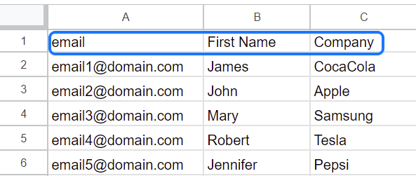 - If you want to personalize your emails with information like the lead’s name or company name, include these as custom variables in your CSV file.