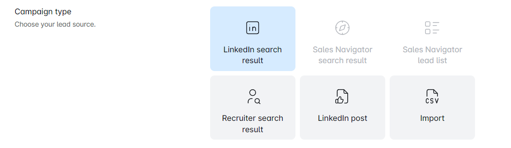 - Decide how you’ll find your leads: using a search URL or a CSV file.