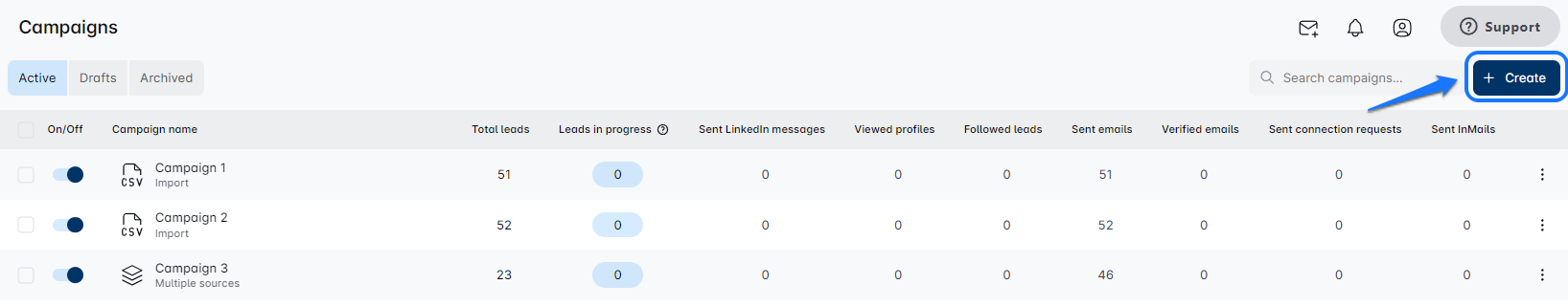 First up, head over to the Campaigns dashboard on Sustainable Advertising. Look for the ‘Create’ button in the upper right corner and give it a click. It’s your first step to something great!